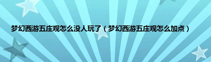 大家好,小常来为大家解答以上问题。梦幻西游五庄观怎么没人玩了,梦幻西游五庄观怎么加点很多人还不知道,现在让我们一起来看看吧!