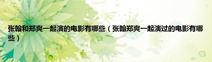 大家好,小常来为大家解答以上问题。张翰和郑爽一起演的电影有哪些,张翰郑爽一起演过的电影有哪些很多人还不知道,现在让我们一起来看看吧!