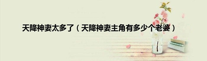 大家好,小常来为大家解答以上问题。天降神妻太多了,天降神妻主角有多少个老婆很多人还不知道,现在让我们一起来看看吧!