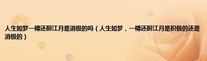 大家好,小常来为大家解答以上问题。人生如梦一樽还酹江月是消极的吗,人生如梦,一樽还酹江月是积极的还是消极的很多人还不知道,现在让我们一起来看看吧!