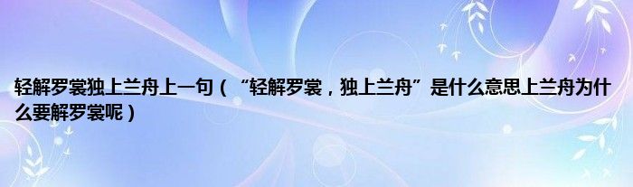 大家好,小常来为大家解答以上问题。轻解罗裳独上兰舟上一句,“轻解罗裳,独上兰舟”是什么意思上兰舟为什么要解罗裳呢很多人还不知道,现在让我们一起来看看吧!