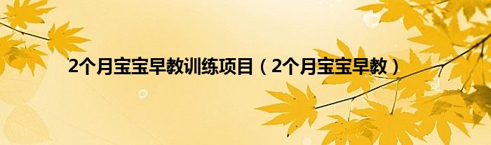 大家好,小科来为大家解答以上问题。2个月宝宝早教训练项目,2个月宝宝早教很多人还不知道,现在让我们一起来看看吧!