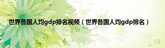 大家好,小常来为大家解答以上问题。世界各国人均gdp排名视频,世界各国人均gdp排名很多人还不知道,现在让我们一起来看看吧!