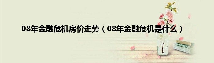 大家好,小常来为大家解答以上问题。08年金融危机房价走势,08年金融危机是什么很多人还不知道,现在让我们一起来看看吧!
