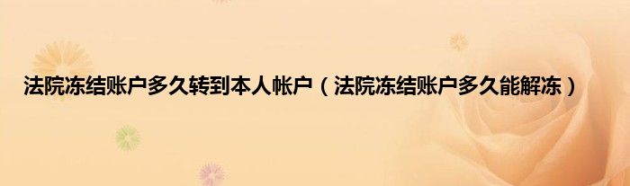 大家好,小常来为大家解答以上问题。法院冻结账户多久转到本人帐户,法院冻结账户多久能解冻很多人还不知道,现在让我们一起来看看吧!