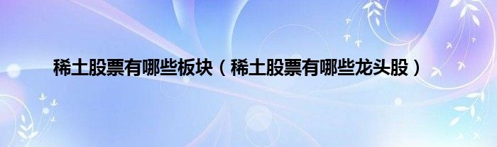 大家好,小常来为大家解答以上问题。稀土股票有哪些板块,稀土股票有哪些龙头股很多人还不知道,现在让我们一起来看看吧!