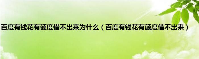 大家好,小常来为大家解答以上问题。百度有钱花有额度借不出来为什么,百度有钱花有额度借不出来很多人还不知道,现在让我们一起来看看吧!