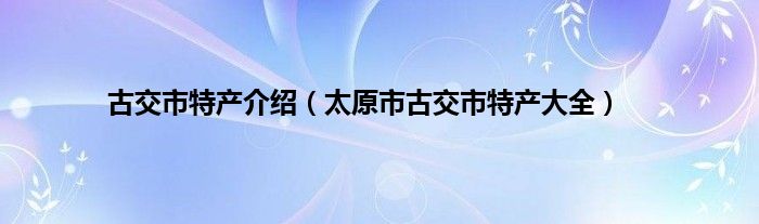 大家好,小常来为大家解答以上问题。古交市特产介绍,太原市古交市特产大全很多人还不知道,现在让我们一起来看看吧!