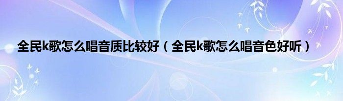 全民k歌怎么唱音质比较好(全民k歌怎么唱音色好听)
