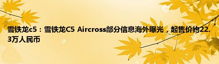 今天来分享一篇个人对雪铁龙c5:雪铁龙C5 Aircross部分信息海外曝光,起售价约22.3万人民币相关分析,众所周知,无论是在坊间民众,还是在汽车媒体的议论中,都是不错的,至于产品到底香不香,通过测试还是可以对雪铁龙c5:雪铁龙C5 Aircross部分信息海外曝光,起售价约22.3万人民币的产品力分析分析的,一起来看看吧: