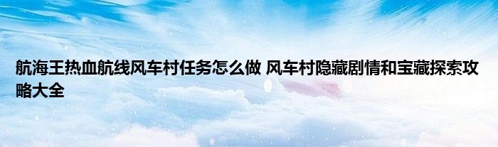 航海王热血航线风车村有非常多的隐藏剧情和宝藏探寻等着玩家们去完成,很多玩家不知道宝藏探寻的任务步骤,导致很多人被困在了这一关,那么航海王热血航线风车村藏宝图位置在哪里?蚕豆小编为您带来航海王热血航线风车村隐藏剧情和宝藏探究攻略大全。