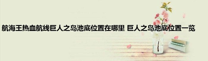 航海王热血航线巨人之岛的池底是藏宝图线索需要玩家找到的地方,因此很多玩家想知道航海王热血航线巨人之岛的池底在哪?蚕豆小编为您带来航海王热血航线巨人之岛的池底位置。