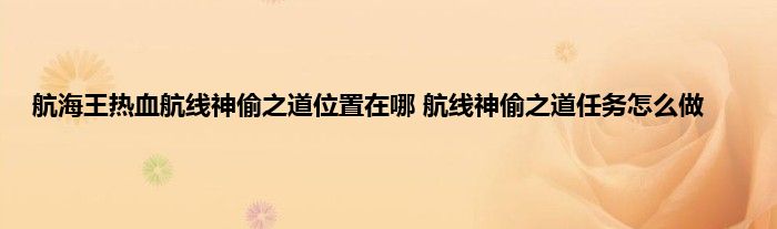 航海王热血航线神偷之道在哪里?