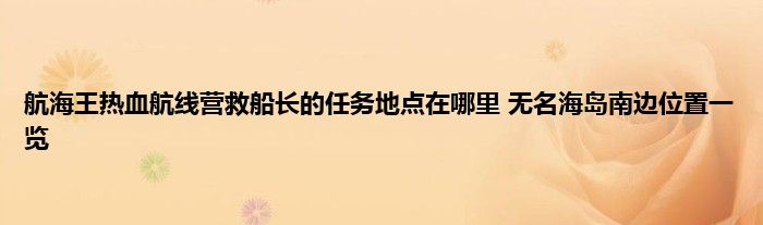 航海王热血航线无名海岛南边是营救船长的任务需要找到的地方,很多玩家都不知道营救船长的任务地点在哪里,因此很多玩家想知道航海王热血航线无名海岛南边在哪里?蚕豆小编为您带来航海王热血航线无名海岛南边位置。