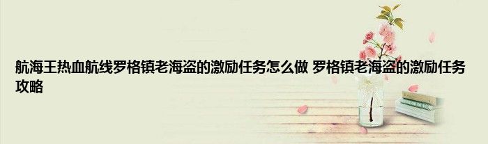 航海王热血航线罗格镇老海盗的激励宝藏探寻任务,玩家需要找到线索密码,很多玩家不知道激励宝藏任务怎么玩,那么航海王热血航线罗格镇老海盗的激励怎么做?蚕豆小编为您带来航海王热血航线罗格镇老海盗的激励任务完成攻略。