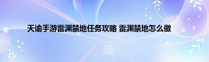 天谕手游中有一个雷渊禁地的任务,玩家要找到任务的接取地点,击败弑神灵墟、青麟镇妖塔(老五)、封印之地的BOSS才可以完成任务,获得奖励,小编收集了雷渊禁地任务的相关攻略,下面就来分享给大家,一起来看看吧。