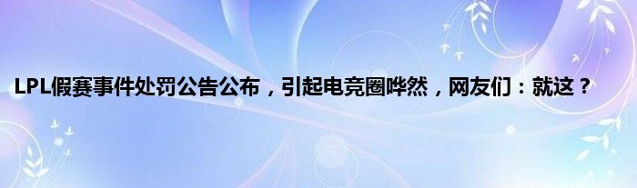之后LDL联盟宣布停赛,全面彻查假赛现象,而在今天LPL赛事官方终于通报了关于LDL以及Bo选手的处罚结果,结果这次FPX的选手假赛处罚却引发了众怒,大量的观众对此表示不满,认为官方的处罚不够严厉。