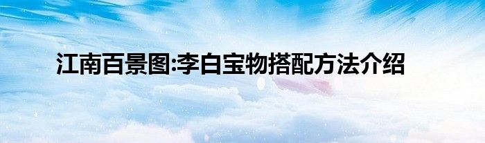 小编今天给各位玩家朋友们带来的是江南百景图:李白宝物搭配方法介绍,有记得的玩家朋友吗?不记得也没有关系,小编已经帮助大家把江南百景图:李白宝物搭配方法介绍找了出来,你只需要动动你的小手就可以轻松知道啦,快来瞧一瞧吧。