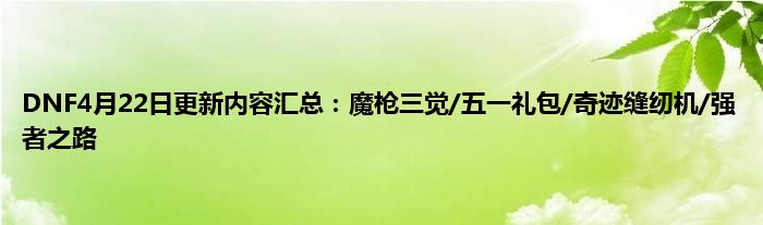 DNF今天进行了维护更新,新版本终于上线了,本次更新将维护4小时30分钟,新版本上线带来了非常多的新内容,也带来了新的礼包,套装,魔枪三觉挑战,奇迹缝纫机等等,很多玩家好奇这次更新具体更新了什么,下面就来尾随小编一起来看看详细的内容吧。