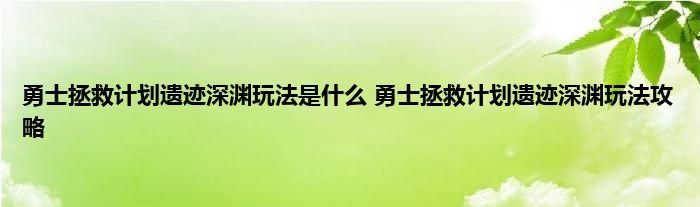 勇士解救计划遗迹深渊玩法是什么?勇士解救计划遗迹深渊怎么玩收益最大?很多小伙伴都不知道勇士解救计划遗迹深渊玩法是什么,接下来和蚕豆小编一起来看看勇士解救计划遗迹深渊玩法攻略吧!