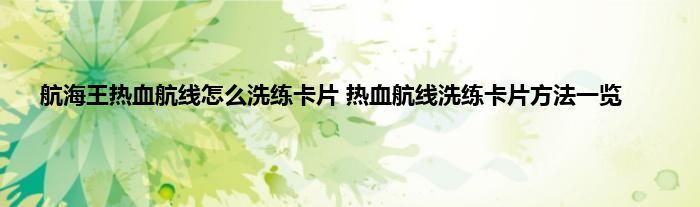 航海王热血航线洗练卡片可以增加角色属性词缀,因此是提升角色强度重要途径,那么航海王热血航线怎么洗练卡片?蚕豆小编为您带来航海王热血航线洗练卡片方法。