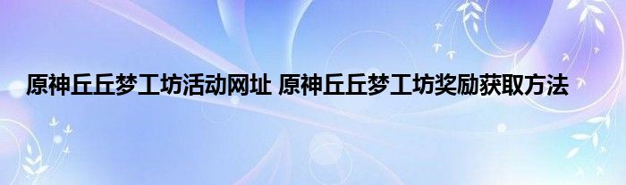原神丘丘梦工坊活动在哪参加?原神丘丘梦工坊活动已经在4月21日开启,这次的活动是新的网页活动,需要玩家在活动网页参加。而这个活动也是可以获得原石的,下面是本地丘丘梦工坊活动的具体地址,还没有参加的玩家不要错过。