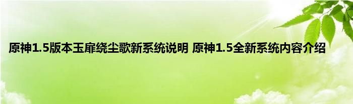 原神1.5版本马上更新,这次更新的版本叫做玉扉绕尘歌,而且这次马上推出一个全新的系统,此系统玩法多样,丰富了玩家日常体验,有很多玩家在问新系统怎么玩,官方这次也提前带来了系统玩法攻略,下面就来尾随小编一起来看一下吧。