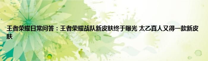 小编今天给各位玩家朋友们带来的是王者荣耀日常问答:王者荣耀战队新皮肤终于曝光,太乙真人又得一款新皮肤,有记得的玩家朋友吗?不记得也没有关系,小编已经帮助大家把王者荣耀日常问答:王者荣耀战队新皮肤终于曝光,太乙真人又得一款新皮肤找了出来,你只需要动动你的小手就可以轻松知道啦,快来瞧一瞧吧。