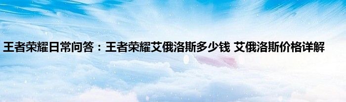 今天来聊聊关于王者荣耀日常问答:王者荣耀艾俄洛斯多少钱,艾俄洛斯价格详解的文章,游戏是很多人的选择,但是游戏玩多了也会身心疲惫,现在就为大家来简单介绍下王者荣耀日常问答:王者荣耀艾俄洛斯多少钱,艾俄洛斯价格详解,希望对各位小伙伴们有所帮助。