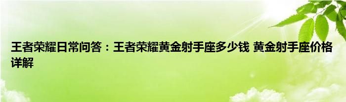 今天来聊聊关于王者荣耀日常问答:王者荣耀黄金射手座多少钱,黄金射手座价格详解的文章,游戏是很多人的选择,但是游戏玩多了也会身心疲惫,现在就为大家来简单介绍下王者荣耀日常问答:王者荣耀黄金射手座多少钱,黄金射手座价格详解,希望对各位小伙伴们有所帮助。
