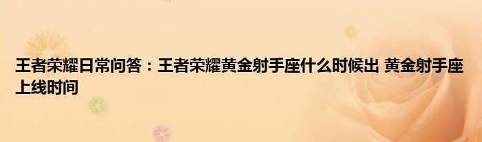 以上就是王者荣耀日常问答:王者荣耀黄金射手座什么时候出,黄金射手座上线时间的推荐,相信通过王者荣耀日常问答:王者荣耀黄金射手座什么时候出,黄金射手座上线时间这篇文章能帮到你,也欢迎对游戏很感兴趣小伙伴们一起来探讨。