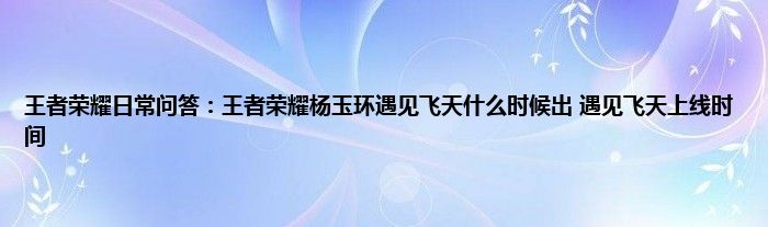 问:王者荣耀杨玉环遇见飞天什么时候出?