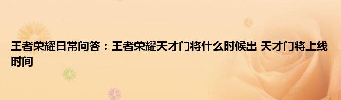 问:王者荣耀天才门将什么时候出?