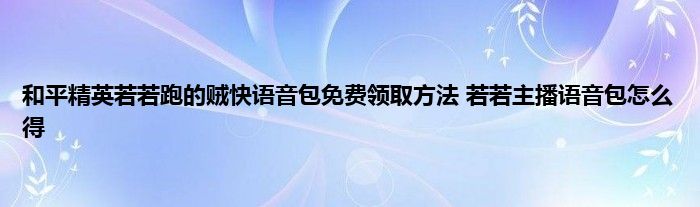 和平精英有不少和主播进行合作推出的语音包,最近又马上推出一款由知名萌妹主播若若跑的贼快的定制语音包,猛男必备,很多玩家不知道这个主播语音包该怎么获得,下面就来尾随小编一起来看看语音包的猎取方式,希翼能帮到大家。