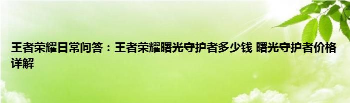 问:王者荣耀曙光守护者多少钱呢?