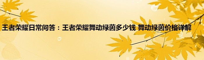小编今天给各位玩家朋友们带来的是王者荣耀日常问答:王者荣耀舞动绿茵多少钱,舞动绿茵价格详解,有记得的玩家朋友吗?不记得也没有关系,小编已经帮助大家把王者荣耀日常问答:王者荣耀舞动绿茵多少钱,舞动绿茵价格详解找了出来,你只需要动动你的小手就可以轻松知道啦,快来瞧一瞧吧。