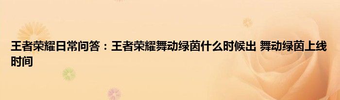 小编今天给各位玩家朋友们带来的是王者荣耀日常问答:王者荣耀舞动绿茵什么时候出,舞动绿茵上线时间,有记得的玩家朋友吗?不记得也没有关系,小编已经帮助大家把王者荣耀日常问答:王者荣耀舞动绿茵什么时候出,舞动绿茵上线时间找了出来,你只需要动动你的小手就可以轻松知道啦,快来瞧一瞧吧。