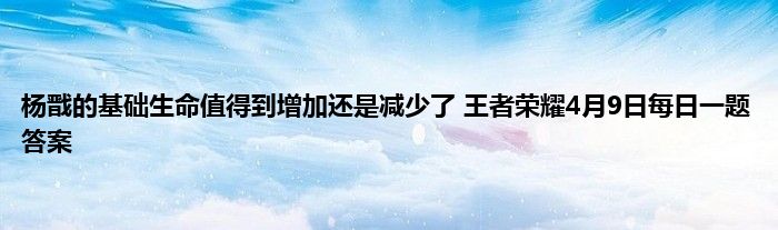 王者荣耀公众号每日都会推出一道问题,只需要回复wz+正确答案就可以获得每日奖励。今天(4月9日)的问题是:在昨日推文英雄调整情报中,杨戬的基础生命值得到增加还是减少了?小编这就来告诉大家王者荣耀4月9日每日一题答案的正确答案。