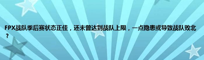 感谢你在百忙之中抽出时间阅读FPX战队季后赛状态正佳,还未曾达到战队上限,一点隐患或导致战队败北?这篇文章。你觉得今天FPX战队季后赛状态正佳,还未曾达到战队上限,一点隐患或导致战队败北?话题怎么样?关于FPX战队季后赛状态正佳,还未曾达到战队上限,一点隐患或导致战队败北?这篇文章的任何评论都可以告诉我。你的每一个建议都是对小编辑的肯定和鼓舞。小编明天会继续给你带来更多的好内容。我希翼你不要错过。感谢支持哟!