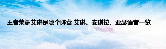 艾琳阵营:艾琳所属的阵营为日落圣殿,同阵营的英雄有安琪拉和亚瑟。