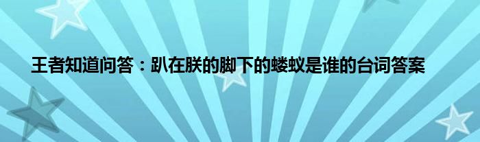 以上就是王者知道问答:趴在朕的脚下的蝼蚁是谁的台词答案的推荐,相信通过王者知道问答:趴在朕的脚下的蝼蚁是谁的台词答案这篇文章能帮到你,也欢迎对游戏很感兴趣小伙伴们一起来探讨。
