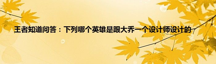 今天来聊聊关于王者知道问答:下列哪个英雄是跟大乔一个设计师设计的的文章,游戏是很多人的选择,但是游戏玩多了也会身心疲惫,现在就为大家来简单介绍下王者知道问答:下列哪个英雄是跟大乔一个设计师设计的,希望对各位小伙伴们有所帮助。