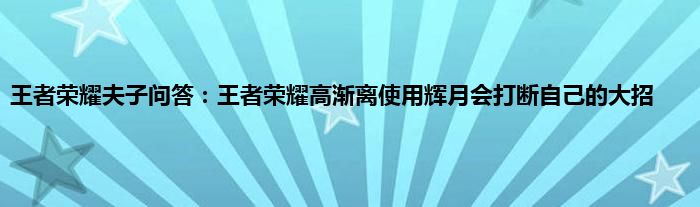 王者荣耀夫子问答:王者荣耀高渐离使用辉月会打断自己的大招