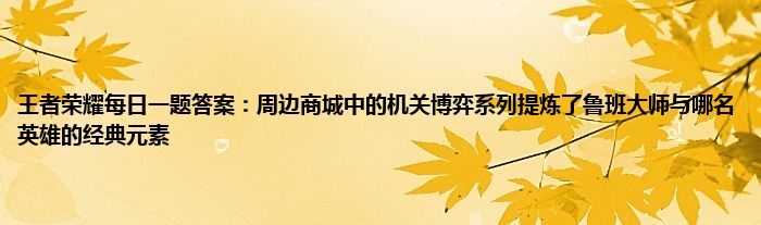 以上就是王者荣耀每日一题答案:周边商城中的机关博弈系列提炼了鲁班大师与哪名英雄的经典元素的推荐,相信通过王者荣耀每日一题答案:周边商城中的机关博弈系列提炼了鲁班大师与哪名英雄的经典元素这篇文章能帮到你,也欢迎对游戏很感兴趣小伙伴们一起来探讨。