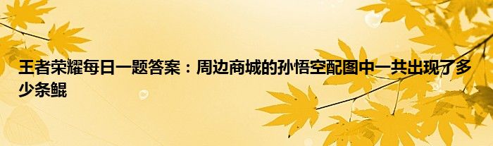 以上就是王者荣耀每日一题答案:周边商城的孙悟空配图中一共出现了多少条鲲的推荐,相信通过王者荣耀每日一题答案:周边商城的孙悟空配图中一共出现了多少条鲲这篇文章能帮到你,也欢迎对游戏很感兴趣小伙伴们一起来探讨。