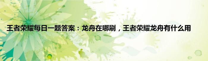 问:王者荣耀龙舟在哪刷?王者荣耀龙舟有什么用?