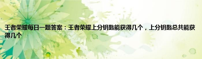 问:王者荣耀上分钥匙能获得几个?上分钥匙总共能获得几个?