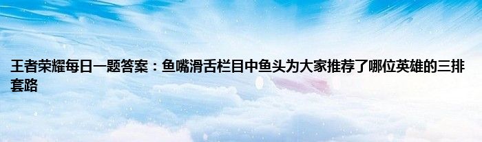 小编今天给各位玩家朋友们带来的是王者荣耀每日一题答案:鱼嘴滑舌栏目中鱼头为大家推荐了哪位英雄的三排套路,有记得的玩家朋友吗?不记得也没有关系,小编已经帮助大家把王者荣耀每日一题答案:鱼嘴滑舌栏目中鱼头为大家推荐了哪位英雄的三排套路找了出来,你只需要动动你的小手就可以轻松知道啦,快来瞧一瞧吧。