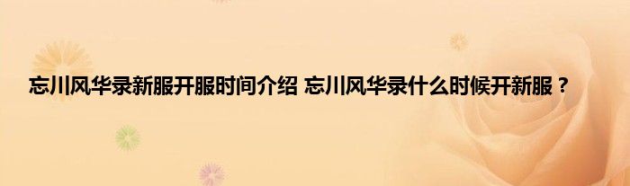 以上就是小编带来的忘川风华录新服开服时间的全部内容。
