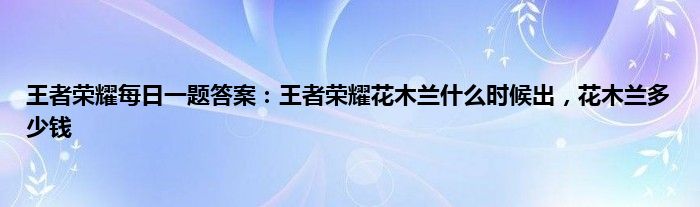 以上就是王者荣耀每日一题答案:王者荣耀花木兰什么时候出,花木兰多少钱的推荐,相信通过王者荣耀每日一题答案:王者荣耀花木兰什么时候出,花木兰多少钱这篇文章能帮到你,也欢迎对游戏很感兴趣小伙伴们一起来探讨。